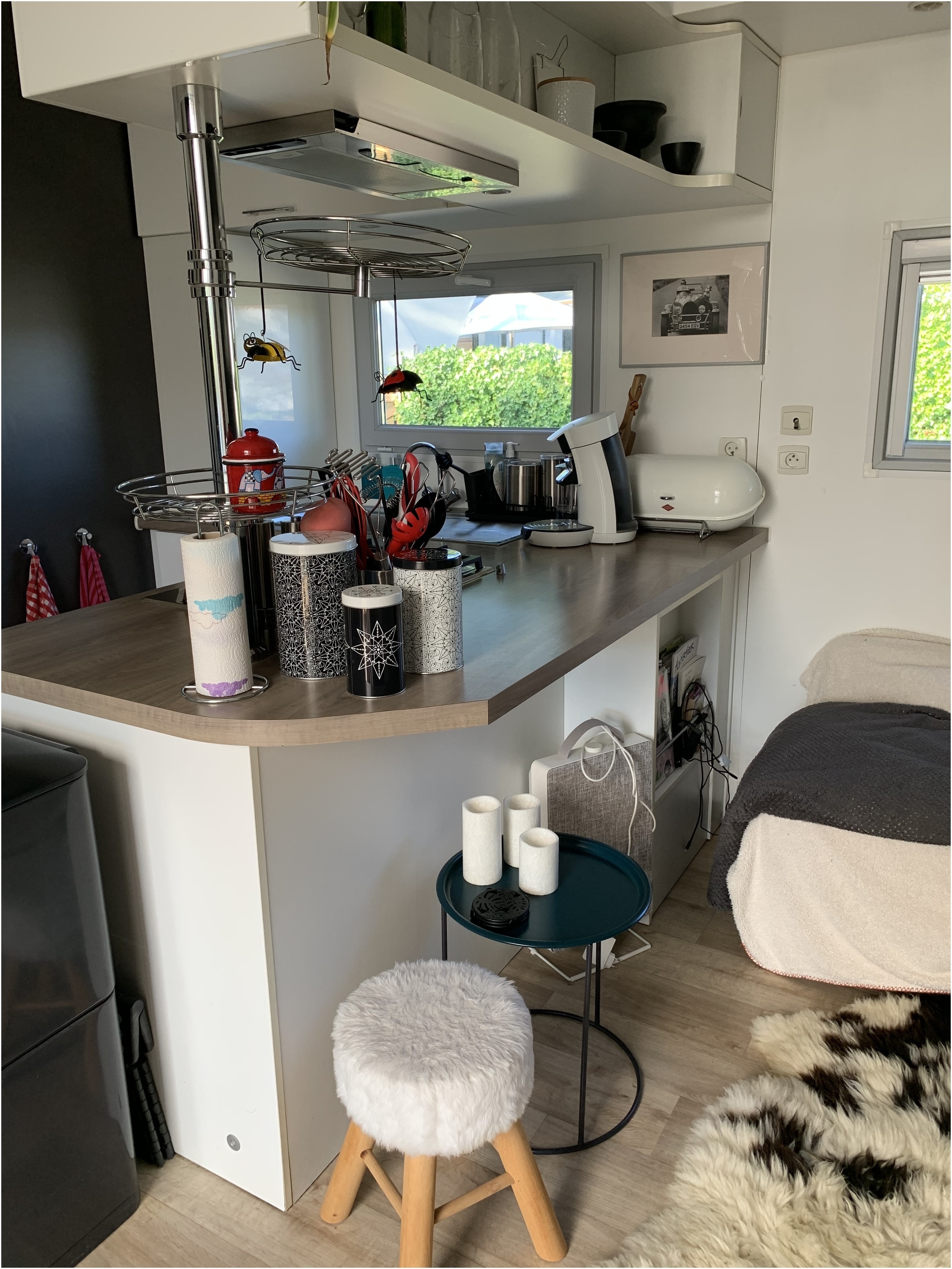 • Open keuken met veel kastruimte, koelkast met klein vriesvak, heteluchtoven en 4-pits gaskookplaat
