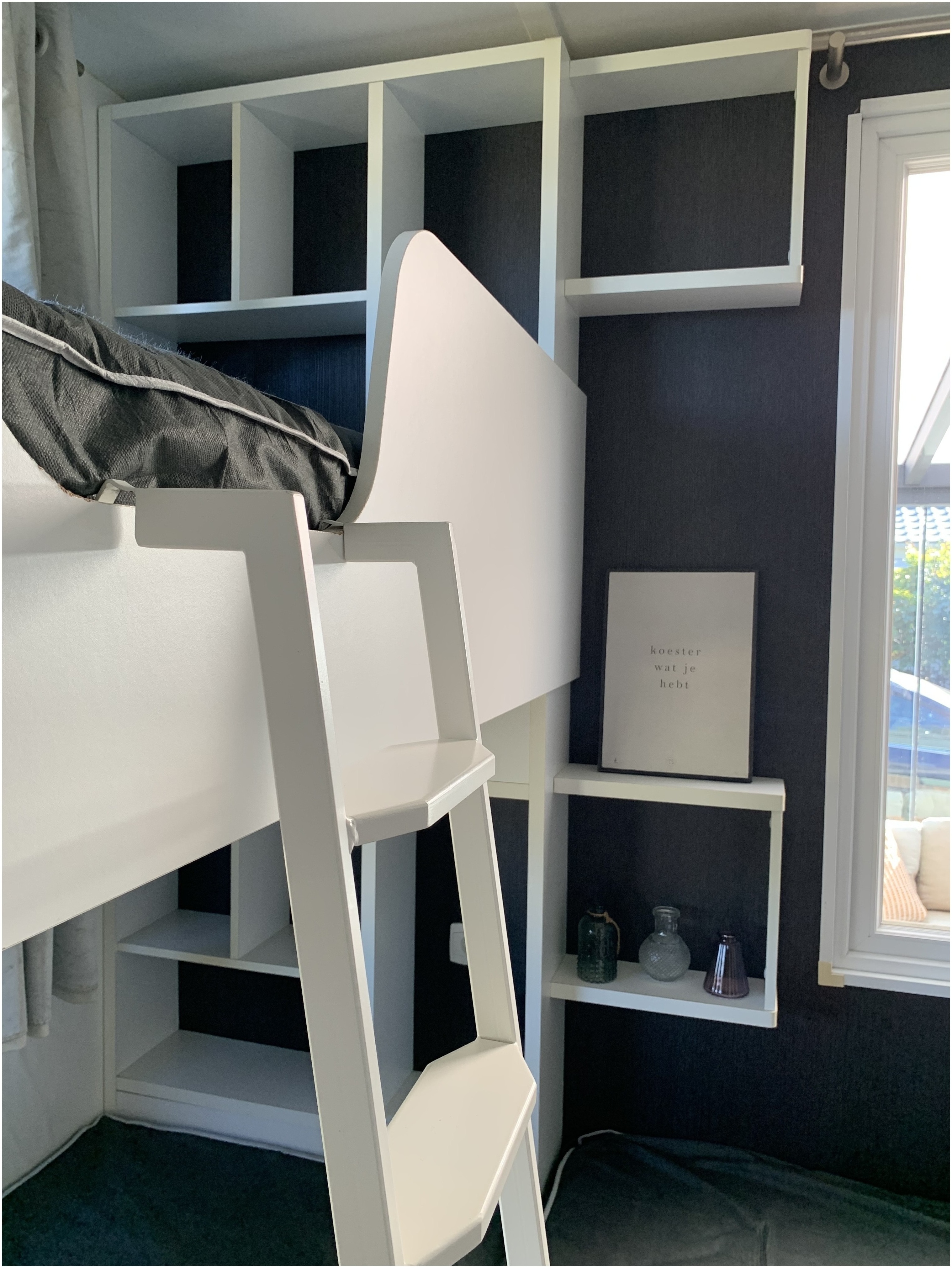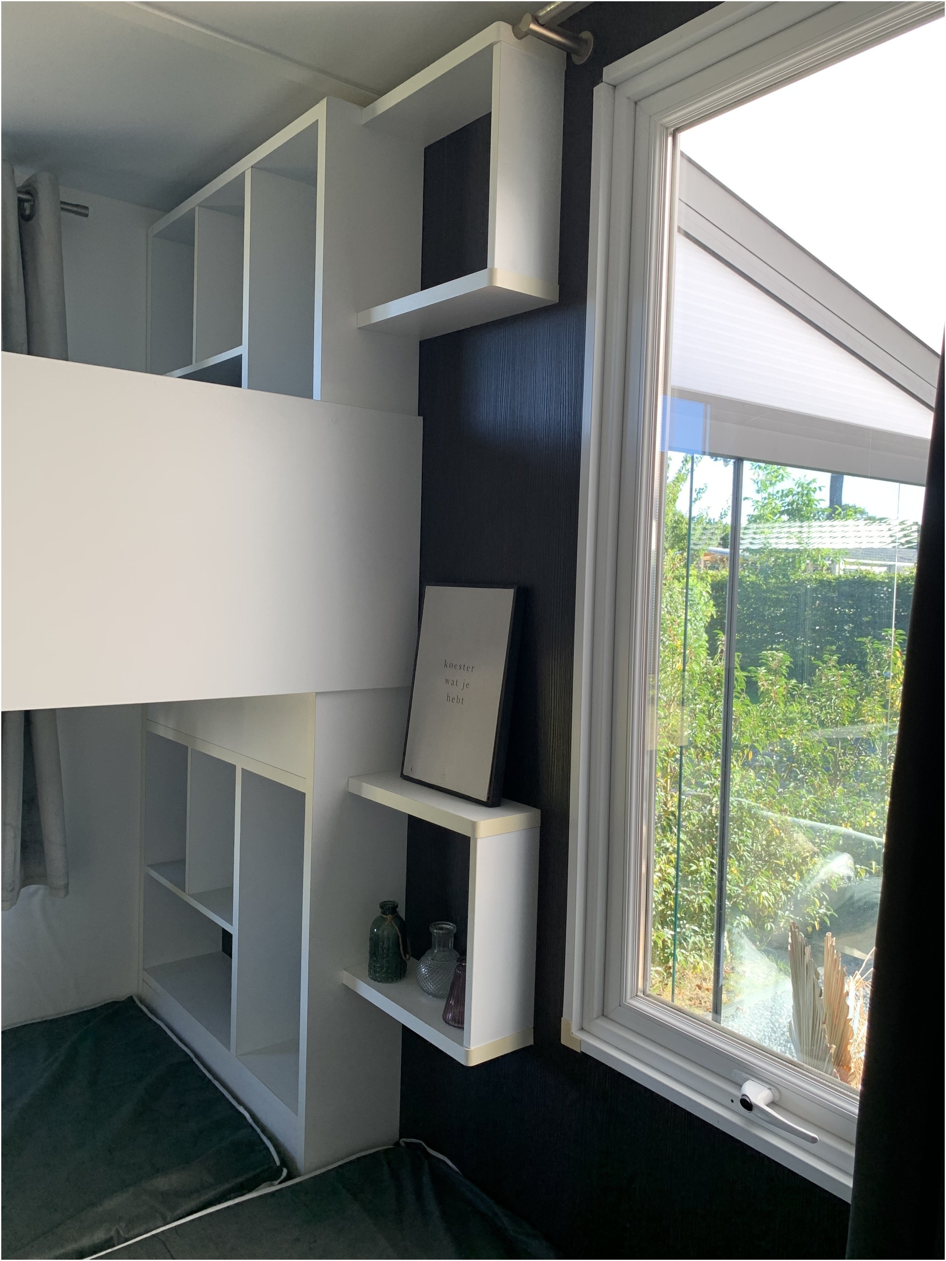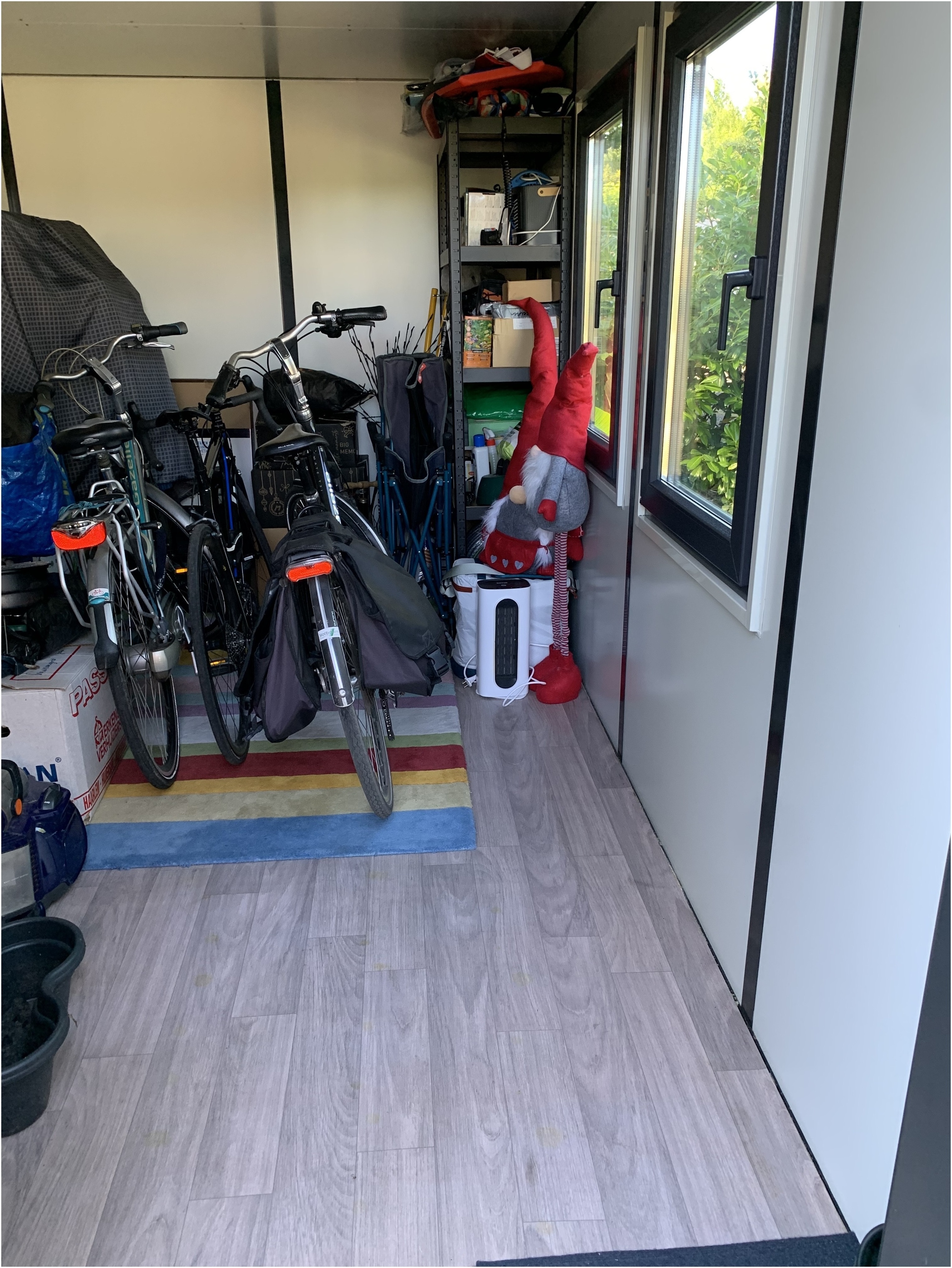 • Aan zijkant 2 grote draai-/kiepramen met PVC raamkozijnen