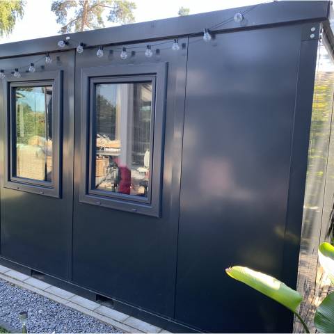 Aan het chalet aangebouwde, verhoogde serre 5x3 m (2024):