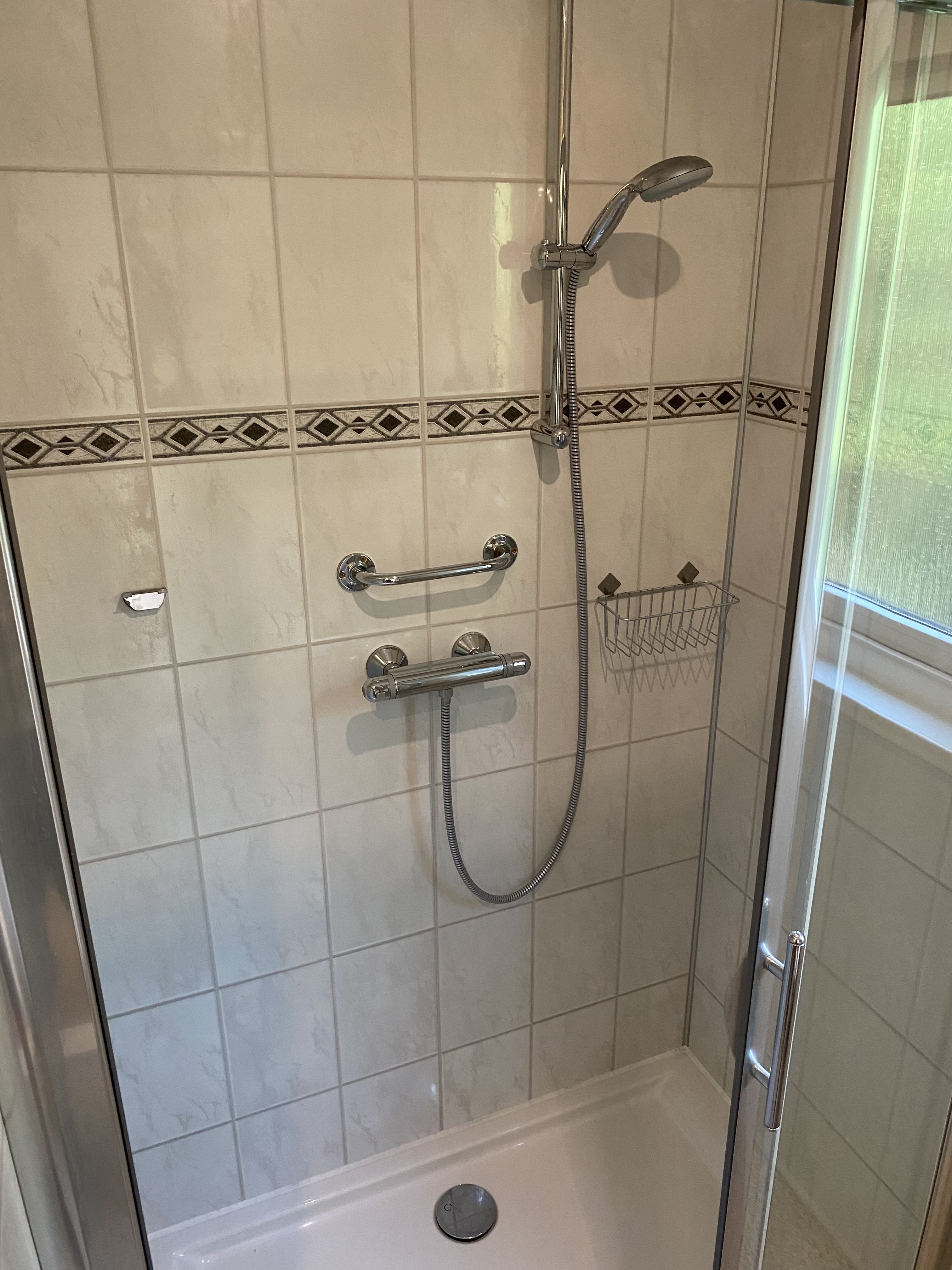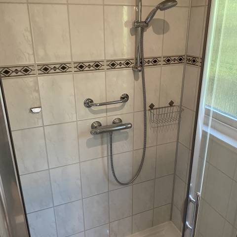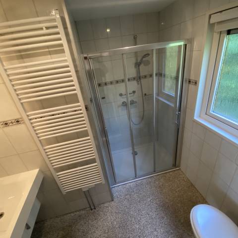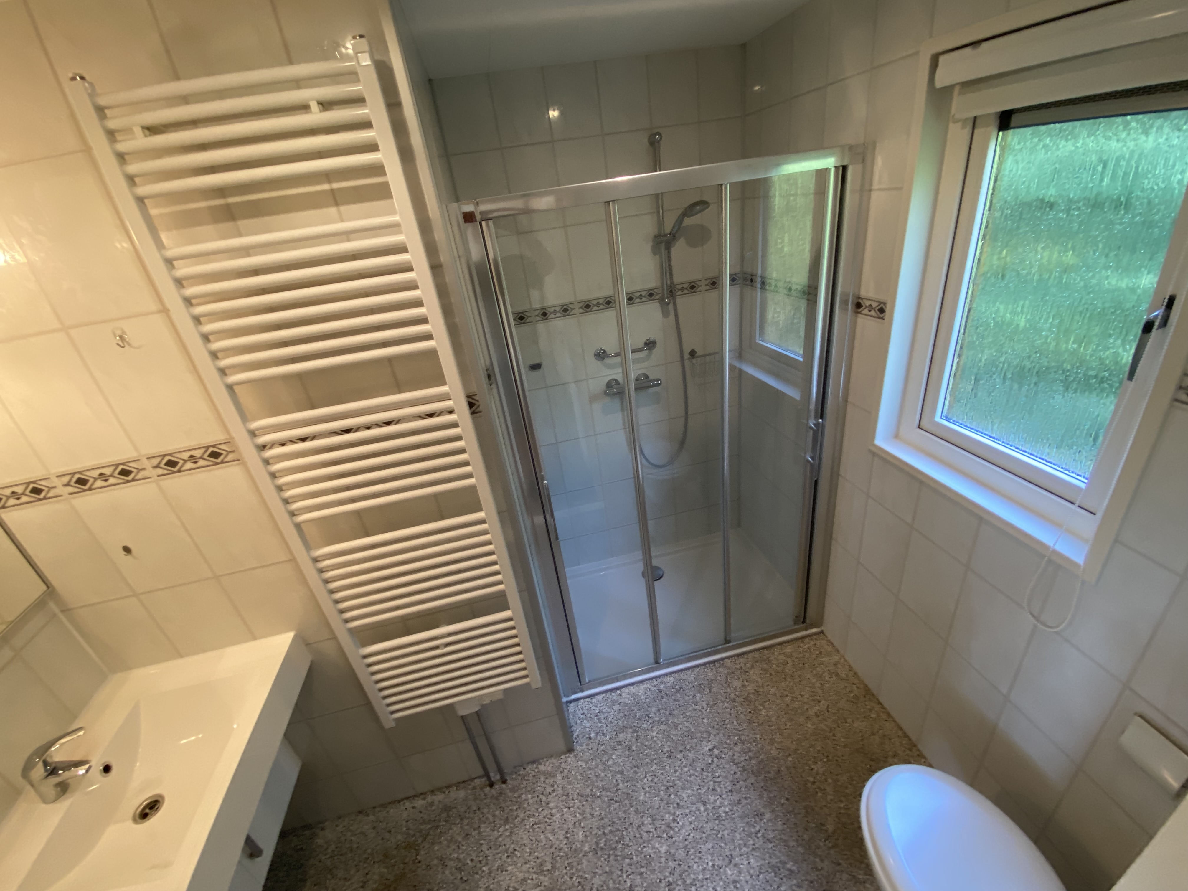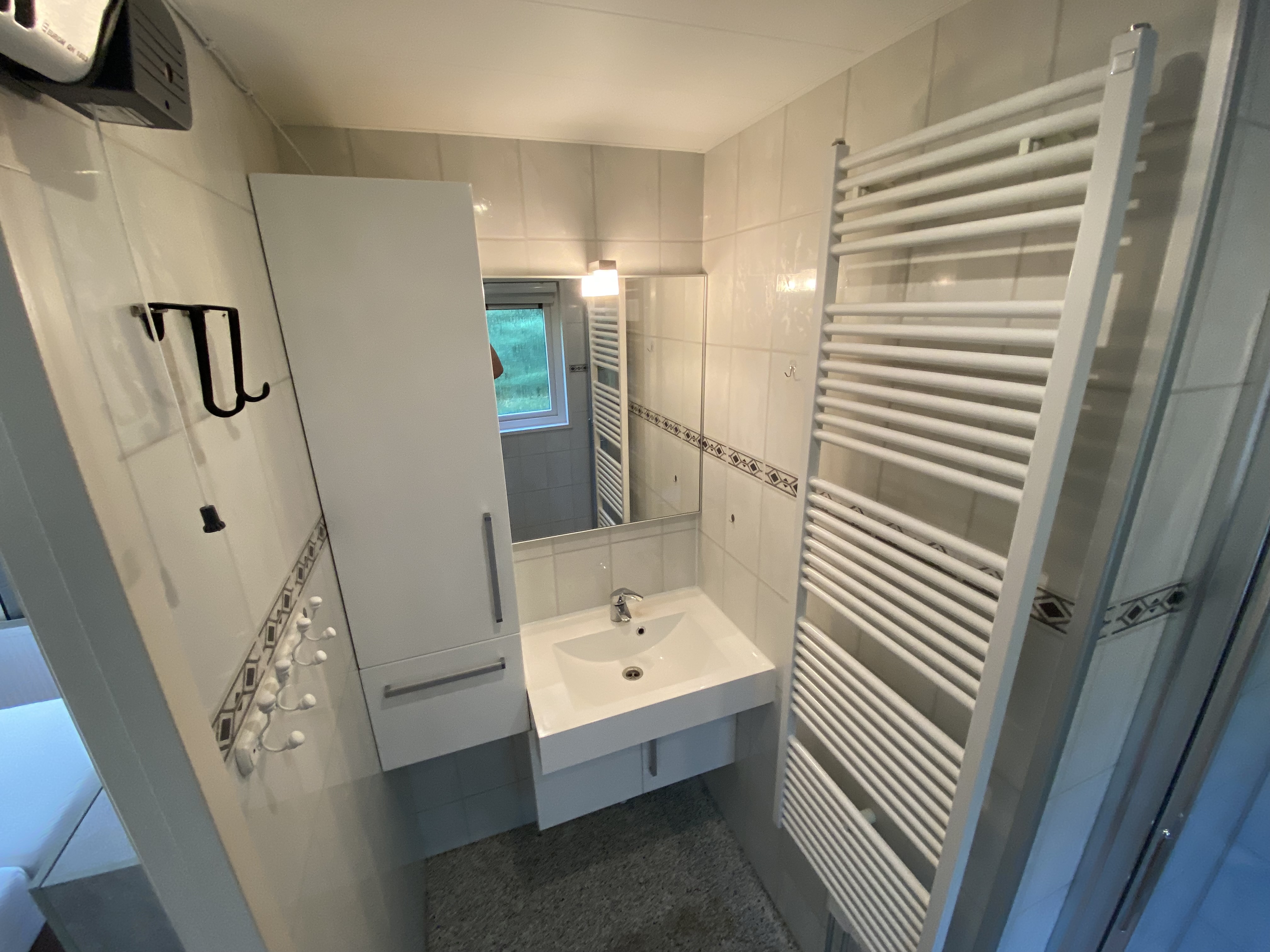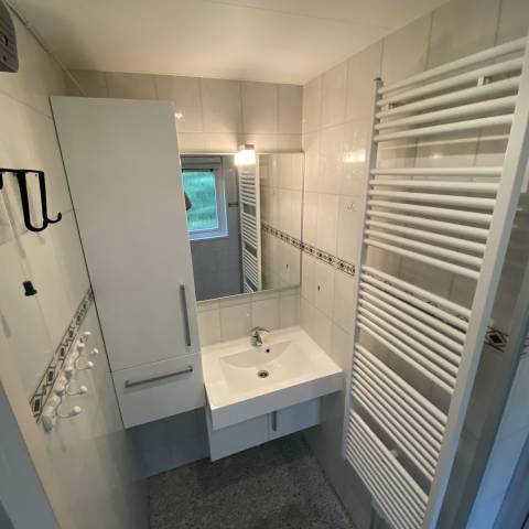Direct vanuit de slaapkamer bereik je de badkamer met badmeubel en designradiator, ruime douche en toilet.
