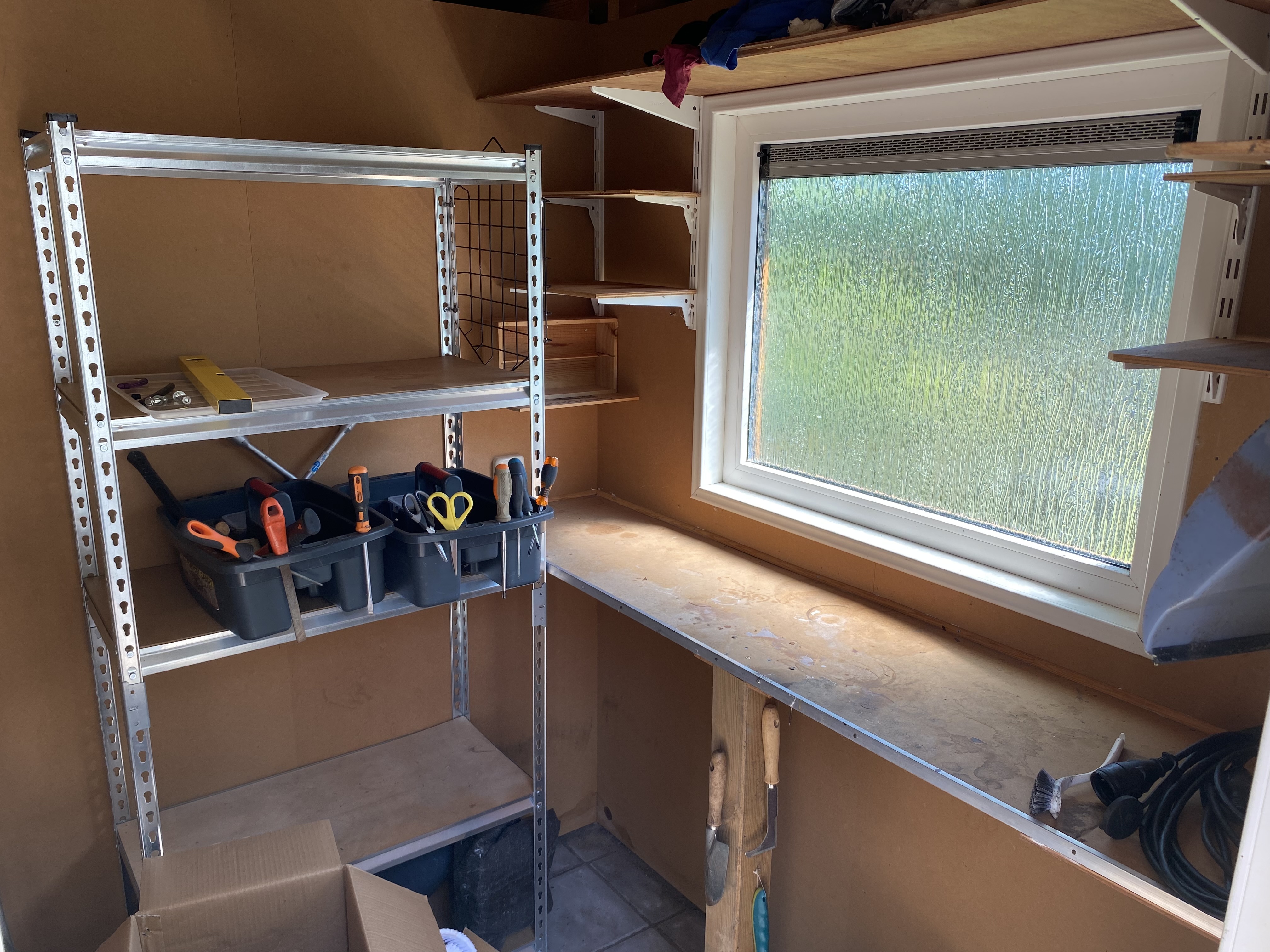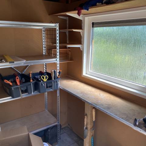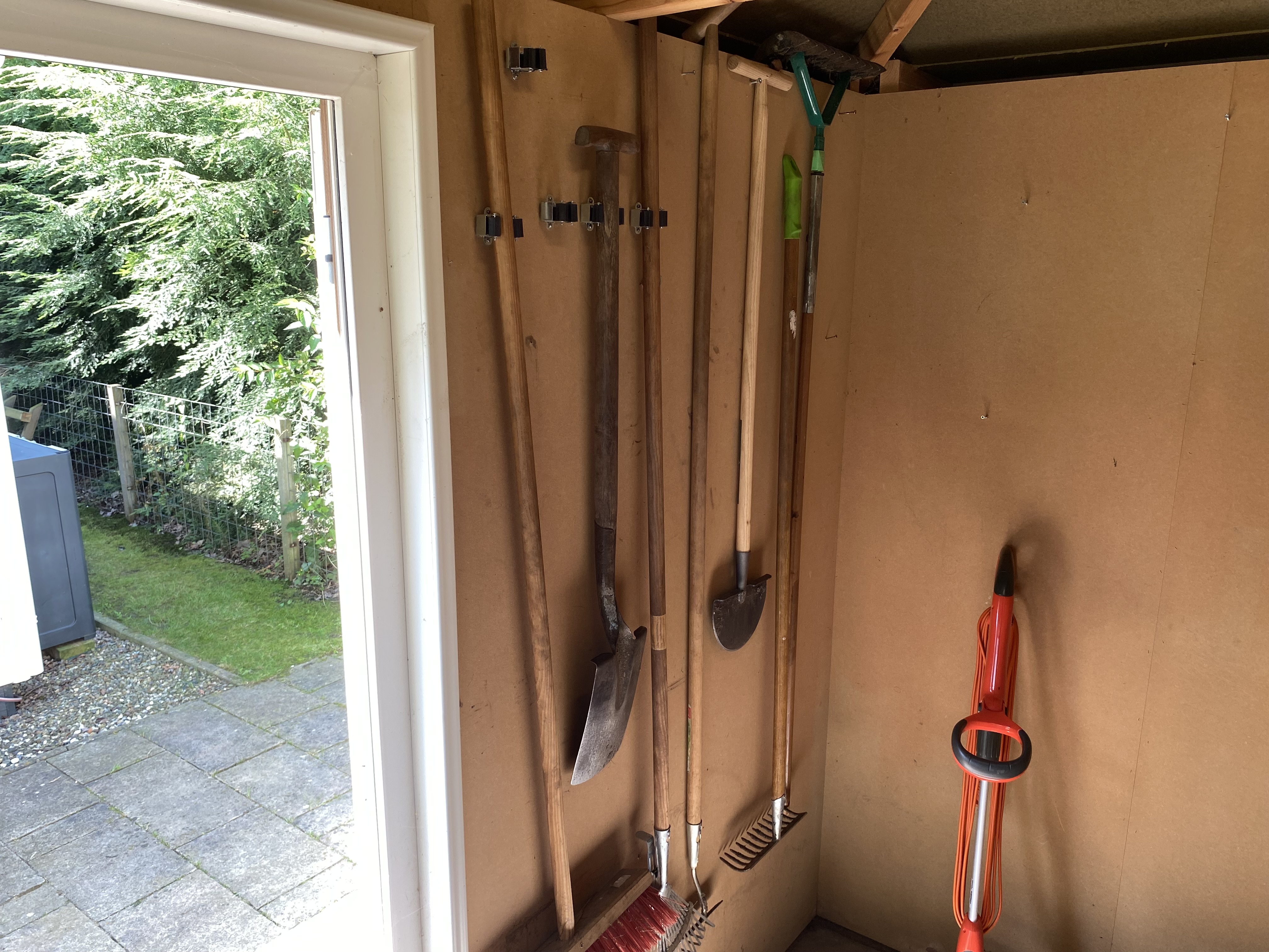 - opslag voor zakken pelletkorrels en is er een bergkast.