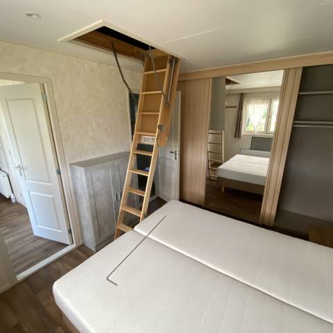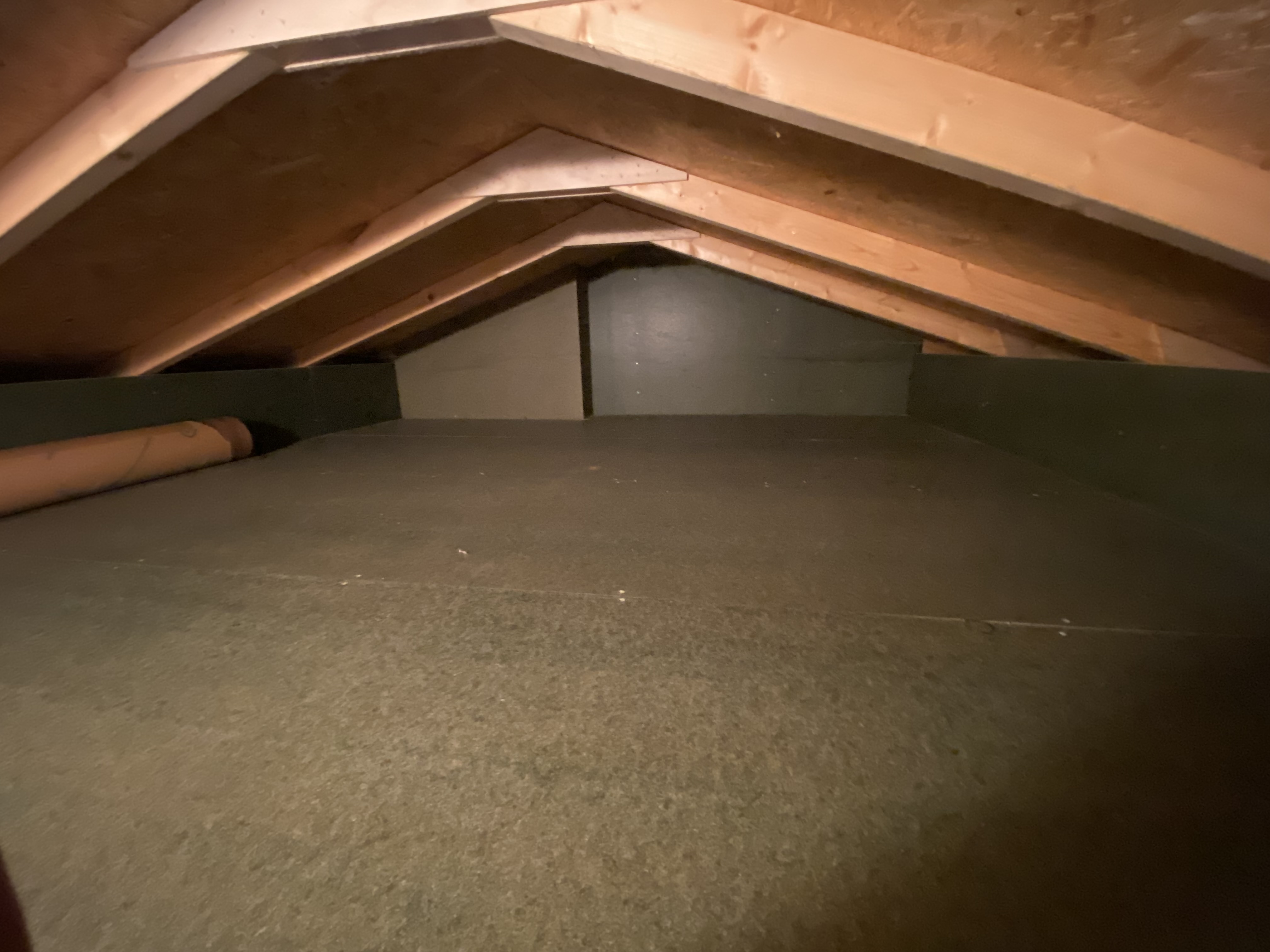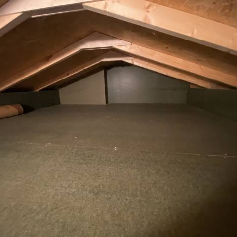 - uittrekbare vlizotrap die toegang geeft tot een bergzolder over een gedeelte van de oppervlakte van het chalet.
